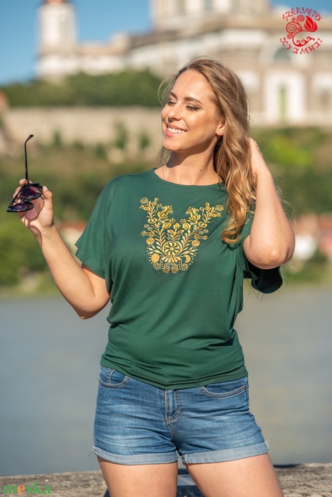 Szervető-jászsági denevérujjas blúz - zöld-arany