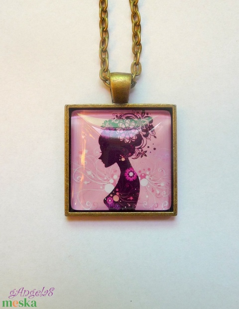 Rózsaszín szögletes, trendi csajos nyaklánc