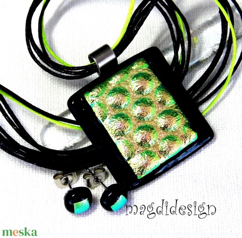 Zöld-arany buborékok üvegékszer szett nyaklánc stiftes fülbevaló