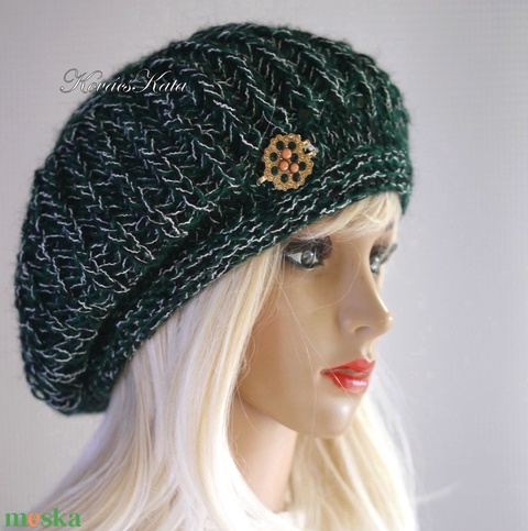 BORBÁLA / cirmos zöld - kézzel kötött moher-akril sapka, barett