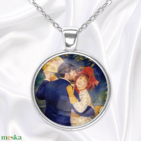 Üveglencsés medál Renoir "Vidéki tánc" c. képével