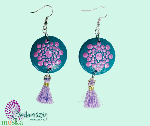 "Rózsa-türkiz" fityegős pontozott mandalás fülbevaló