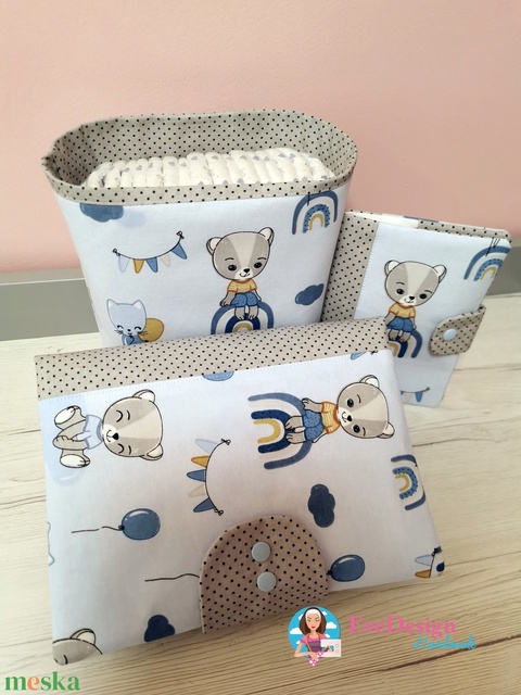 Babalátogatáshoz tökéletes választás ez a Babalátogató ajándék csomag. Csupa hasznos dolog, melynek biztosan örülni fognak az újdonsült Anyukák/Apukák. A termékek méretei: Dupla cipzáras Pelenka táska: Kb 26 cm széles és 44 cm hosszú (kinyitott állapotban) Kiskönyv: Kb 13 cm széles x 18 cm magas becsukott állapotban Asztali pelenka tároló: 22 cm magas, 17 cm széles, 12 cm talpszélességű Használatával minden fontos holmit magunkkal cipelhetünk anélkül, hogy saját táskánk átláthatatlanná válna a sok babaholmi révén. A táska egy normál méretű kézitáskába belefér. Anyaga 100 % pamut. Belseje enyhén bélelt, hogy jó tartása legyen. Műanyag patenttal záródik- A cumi, pelenka, krémek, törlőkendő csak illusztráció nem a termék részei. Az ár csak a pelenkatáskára vonatkozik. Mérete kinyitott állapotban: Kb 26 cm magas és 44 cm széles. (A minta elhelyezése változhat, mert minden terméket egyszer fotózok.) NÉVHÍMZÉSSEL IS KÉRHETŐ, mely a következő linken vásárolható meg. Keresztév vagy becenév: https://www.meska.hu/p4640356-nevhimzes Teljes név: https://www.meska.hu/p4640359-nevhimzes Mosása: 30 fokon rövid programon lehetőleg mosózsákban. Színfogó kendő javasolt az élénk színek miatt. Szárítógépben nem szárítható. Amennyiben készült már a termékről névhímzéses fotó, akkor az az utolsó képen látható. Szép napot EveDesign