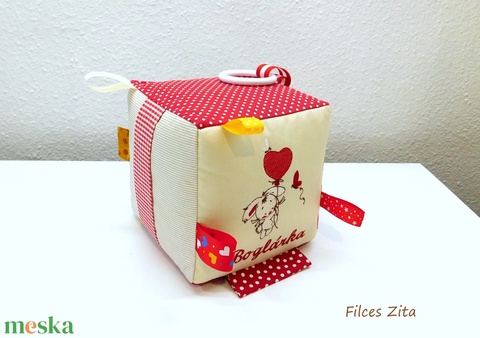 Nyuszis babakocka - nyuszis egyedi címkekocka névhímzéssel
