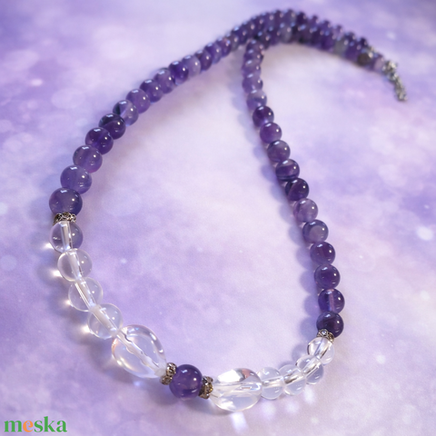 Chevron ametiszt nyaklánc hegyikristállyal