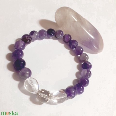 Hegyikristály és chevron ametiszt ásvány karkötő