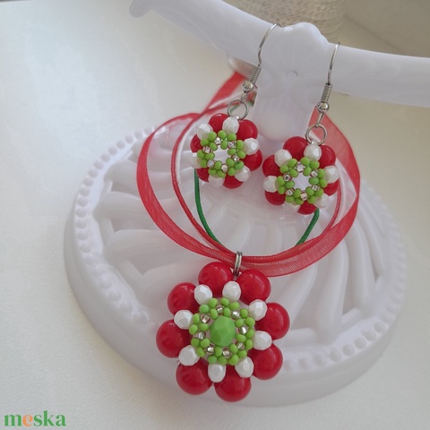 Nemzeti színű gyöngy medálos nyaklánc + fülbevaló