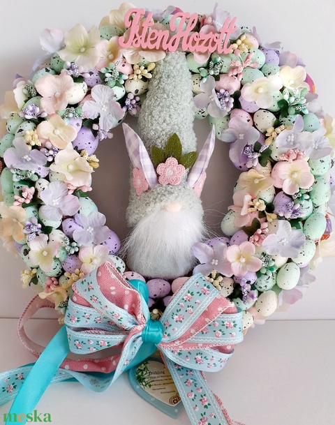 Tavaszi kopogtató, nyuszi manóval, pasztell színekben
