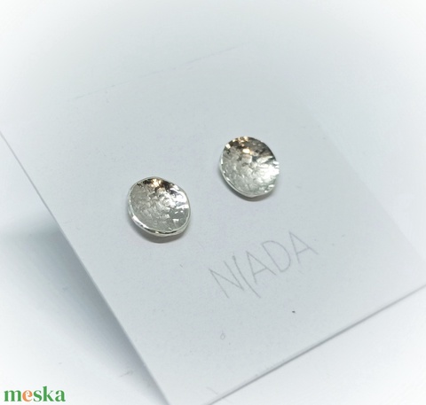 Telehold ezüst bedugós fülbevaló, kerek alakú pötty fülbevaló ezüstből, kalapált mintával