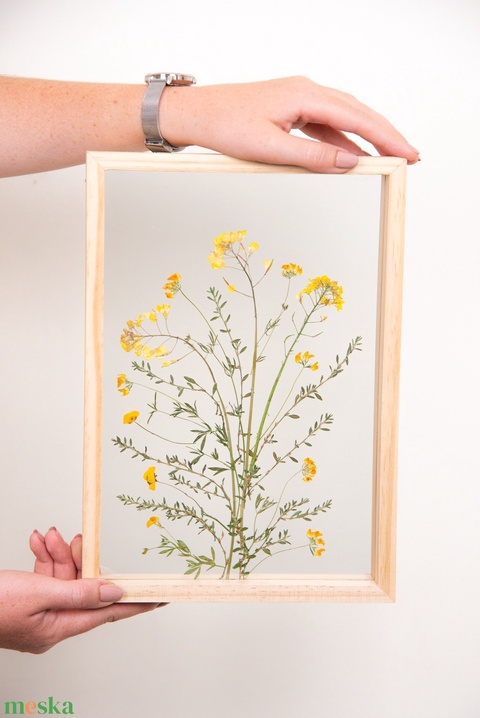 Sárga mezei virágok natúr fa keretben 21 x 38 x 4.4 cm