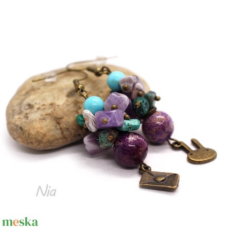 Tavaszi szél - ásványfülbevaló nyuszi és boríték medállal