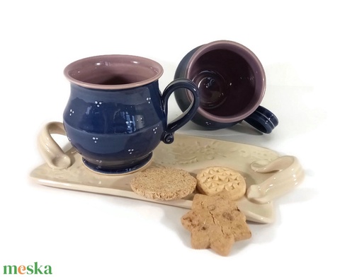 Páros kékfestő bögre füles tálcán