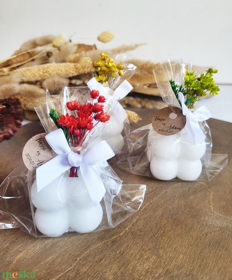 Esküvői gyertya fa korongon köszönőajándék, mini bubi