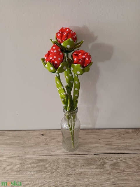 Piros pöttyös textil rózsa
