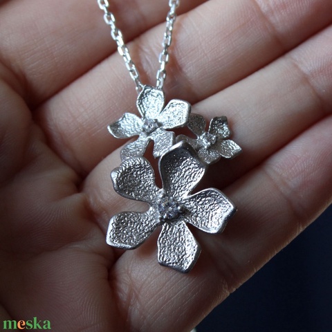 Virágeső - virágos ezüst medál cirkónia kővel nyakláncon