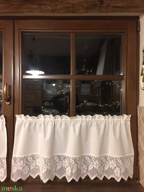Százszorszép virágok- horgolt csipkemintával,díszített fehér függöny