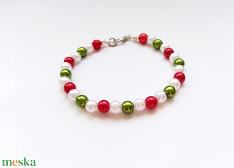 Piros-fehér-zöld karkötő - 6 mm-es plastic gyöngyből