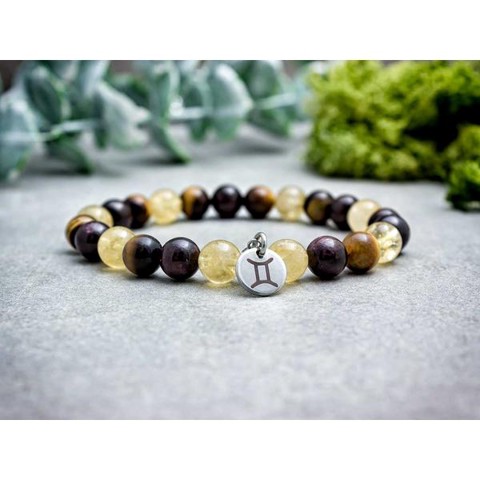 Kifejezetten az Ikrek csillagjegy szülötteinekIkrek Csillagjegy Medálos Ásvány Karkötő - Kommunikáció, Intelligencia és Vitalitás Ez a gyönyörű ásvány karkötő három energikus ásvány, a citrin, a tigrisszem és a gránát kombinációjából készült, amelyek tökéletesen illeszkednek az Ikrek jegy energiáihoz. A karkötő nemcsak stílusos kiegészítő, de támogatja az Ikrek erősségeit, és segít leküzdeni a gyengeségeiket. A karkötőben található ásványok és hatásaik:Citrin: Bőséget, szerencsét és prosperitást hoz. Erősíti az önbizalmat, a kreativitást és a motivációt.Tigrisszem: Erősíti az intuíciót, a bátorságot és a magabiztosságot. Védelmező kő, elűzi a negatív energiákat és segít a nehézségek leküzdésében.Gránát: Vitalitást, energiát és dinamizmust ad. Támogatja a szenvedélyt, a bátorságot és a kitartást. Az Ikrek jegy jellemzői:Kommunikatív, intelligens és kíváncsiKreatív, találékony és humorosVáltozékony, rugalmas és alkalmazkodóFelületes, nyugtalan és türelmetlen Ez a karkötő tökéletes választás az Ikrek számára, akik:Szeretnének erősíteni a kommunikációs képességeiket és intelligenciájukatTöbb energiára és vitalitásra vágynakSzeretnének könnyebben elérni a céljaikatVédelmet keresnek a negatív energiák ellen A karkötő viselése: A karkötő ikrek (05.21. - 06.21.) jegyhez passzoló gránát, karneol, tigrisszem és jáspis 8mm-es ásvány gyöngyökből áll. Az ásvány golyók gumira vannak felfűzve, így kényelmes a hordása. Ajándéknak is tökéletes:Ez a karkötő egy kedves és egyedi ajándék lehet bármelyik Ikrek jegyű ismerősödnek. Fontos megjegyzés:Az ásványok hatását nem befolyásolja, hogy ha eltérő a horoszkópod. A karkötőt nyugodtan hordhatja más jegy szülötte is. Bízz a megérzéseidben! Mindig azt az ásványt válaszd, ami a legjobban vonz!Az ásványok árnyalatai minimálisan eltérhetnek a képen láthatótól, hiszen természetes anyagok, és nincs két tökéletesen egyforma belőlük. Csuklóméretenként a karkötőben található ásványok darabszáma eltérhet a képen láthatótól. Figyelem! Az ásványokat, kristályokat az őskor óta használják a test, a lélek és az érzelmek harmonizálására. Az ókori kultúrákban kifejezetten elterjedtek voltak. Az évezredek alatt számtalan tudás és tapasztalat gyűlt össze róluk. Ásvány ékszereink leírásánál a meghatározó szakirodalom alapján készült összegzések olvashatók. Fontos! Az ásvány ékszerek viselése, az ásványok és kristályok gyógyításban, alternatív terápiaként való használata nem helyettesíti a modern orvostudományt, a gyógyszeres kezelést. Betegség esetén az öngyógyítás helyett kérjük, forduljon szakemberhez!