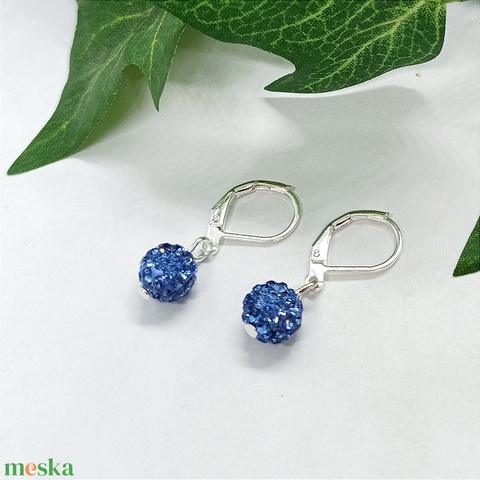 Kék csillogó shamballa gyöngyös lógós fülbevaló