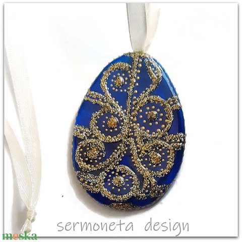 Fabergé stílusú húsvéti tojás olvasztott üvegből, húsvéti dísz, szalaggal felakasztható dísz