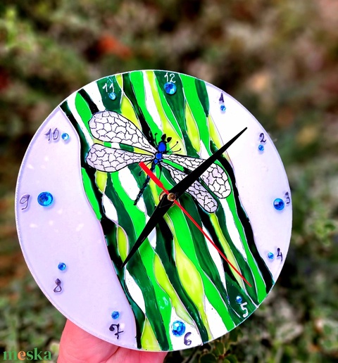 Szitakötős falióra-festett üveg óra