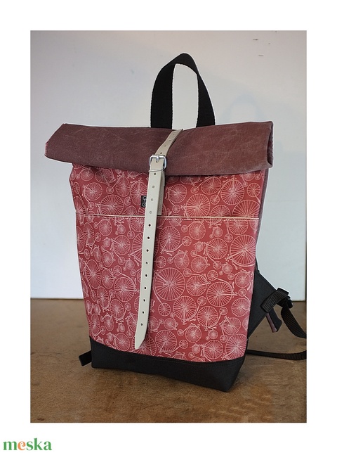 Elől zsebes velocipéd, bicikli mintás hátizsák