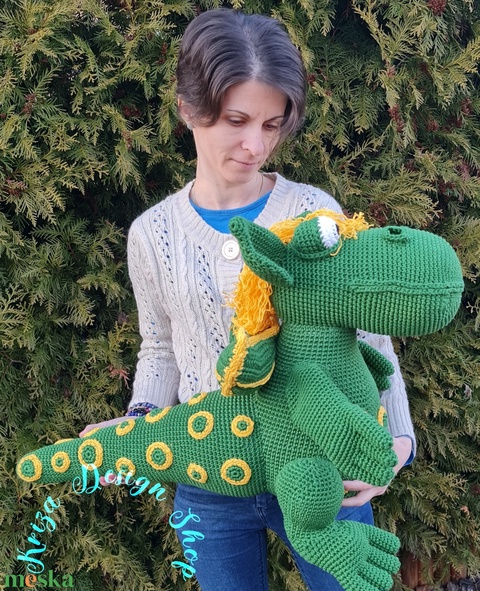 Kézműves horgolt kabala figura - Óriás zöld sárkány XXL méretben