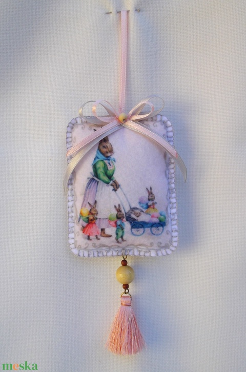 Vintage nyuszis függődísz, Nyuszimama kisnyulakkal