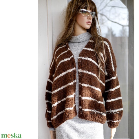 MONA / csokoládé - trendi kézzel kötött chunky alpaka kardigán, kabátka