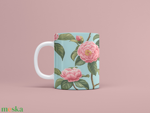 Kamélia mintázatú kerámia bögre