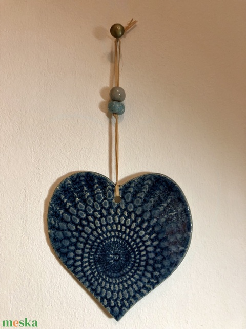 Kerámia szív függődísz - kék