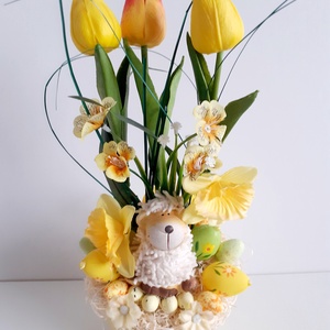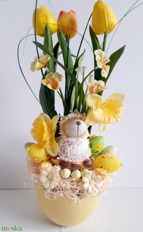 - Anyaga: kerámia kaspó, figura, tojások, virágok