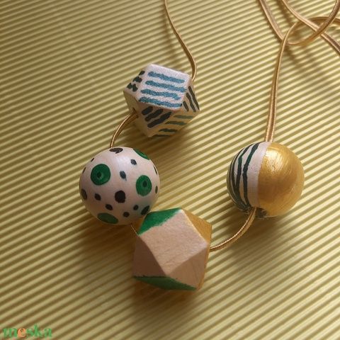 Mintás zöld-arany fa bogyós nyaklánc