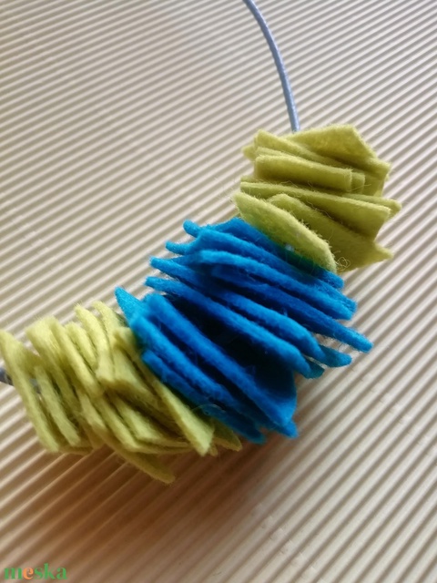 Színes kék mustársárga filc nyaklánc-KIFUTÓ TERMÉK
