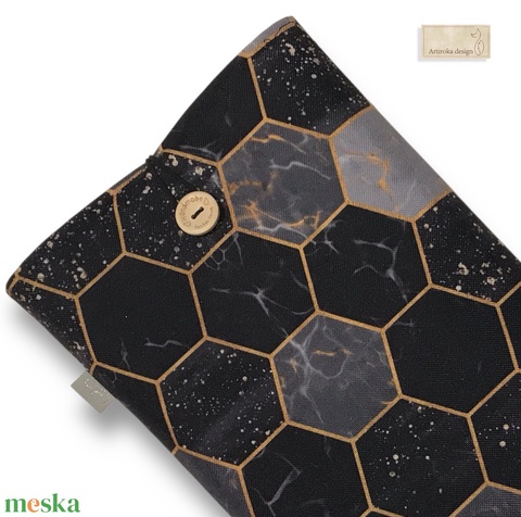Bélelt könyvtok, vízálló textilből, geometria mintával fekete-szürke színben - Artiroka design