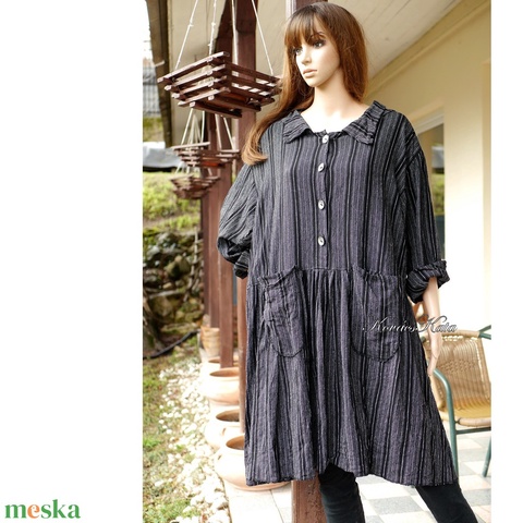 ILA-RUHA - flapper ingruha / fekete-szürke csíkos len