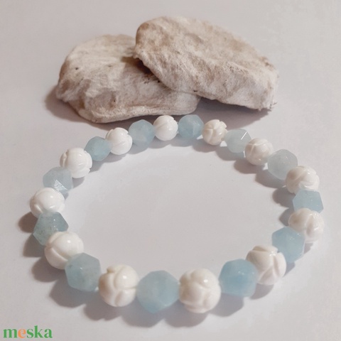 Akvamarin és kagylóhéj ásvány karkötő