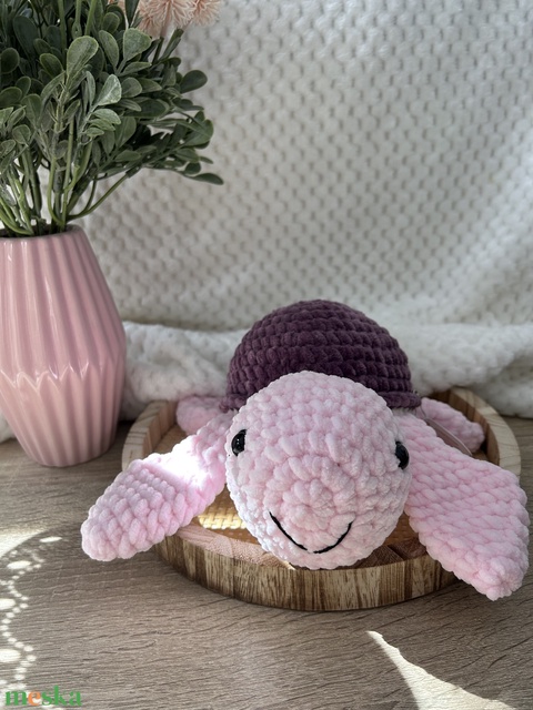 Nagy horgolt teknős (sötétlila-világosrózsaszín-fehér)