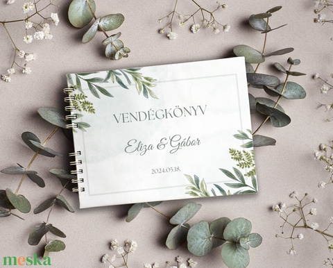 Zöld levelek kerettel vendégkönyv, fotóalbum