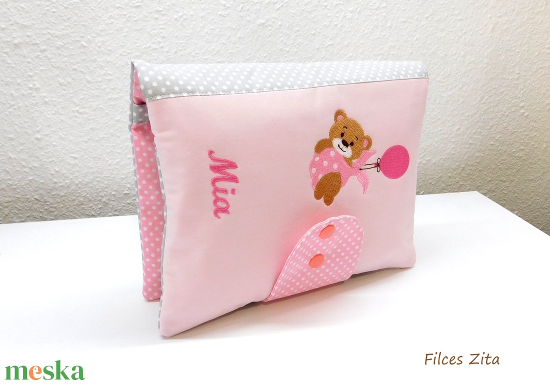 Macis pelenkatáska - textil pelenkarendező hímzett névvel- egyedi macis pelenkarendező