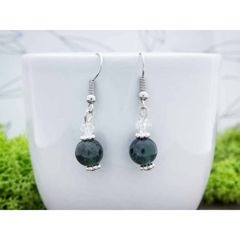 Vonzó sötét, mély zöld moha achát lógós ásvány fülbevaló.Amit az achátról érdemes tudnod: Az achát minden színben fellelhető, többnyire szürke, kékesszürke, zöldesszürke, szürkésfehér, barna csíkozással, áttetsző. Lelki gyógyhatás: Az achát lelki gyógyhatásai közül a legkiemelkedőbb a segítségnyújtása félelmeink leküzdéséhez. Ez a mutatós kő reményt és bátorságot ad, segít új életterveink megtalálásában és kialakításában. Talán mindannyian ismerünk olyan férfiakat, akikre túlzott agresszió a jellemző, illetve olyan nőket, akik túlzott gondoskodásukkal megfojtják a körülöttük lévőket. Az ilyen típusú emberek számára az achát a legmegfelelőbb kőtípus, mivel a segít harmonizálni a női / férfi energiákat (jin és jangot), amikor azok kibillennek a megfelelő egyensúlyukból. Testi gyógyhatás: Az achát bélrendszeri problémák fellépésekor kitűnő kiegészítő terápia lehet, szabályozza az emésztést, segíti a bélflóra helyreállítását. Az immunrendszerre gyakorolt pozitív hatása révén ellenállóbbá tesz a fertőzésekkel szemben. Terhesség esetén, segít a hányinger leküzdésében és segíti a baba növekedését. Hozzárendelt mágikus hatás: Az arab kultúra szerint az achát rendelkezik azzal a tulajdonsággal, hogy viselője meg tudja különböztetni az igaz és a hamis barátokat. Szerencsekőként különösen azoknak ajánlott, akik nehezen tudnak ellenállni a szerencsejátékoknak. Sokak szerint vonzza a pénzt és a gazdagságot. Csillagjegyei: Ikrek, Rák Csakrái: Gyökércsakra, Szívcsakra Nikkelmentes ékszer!Egyedi tervezés alapján készült kézműves ékszer.Amennyiben egyéni kérésed van, vagy nem találod, amit szeretnél, keress engem bátran. Figyelem! Az ásványokat, kristályokat az őskor óta használják a test, a lélek és az érzelmek harmonizálására. Az ókori kultúrákban kifejezetten elterjedtek voltak. Az évezredek alatt számtalan tudás és tapasztalat gyűlt össze róluk. Ásvány ékszereink leírásánál a meghatározó szakirodalom alapján készült összegzések olvashatók. Fontos! Az ásvány ékszerek viselése, az ásványok és kristályok gyógyításban, alternatív terápiaként való használata nem helyettesíti a modern orvostudományt, a gyógyszeres kezelést. Betegség esetén az öngyógyítás helyett kérjük, forduljon szakemberhez!
