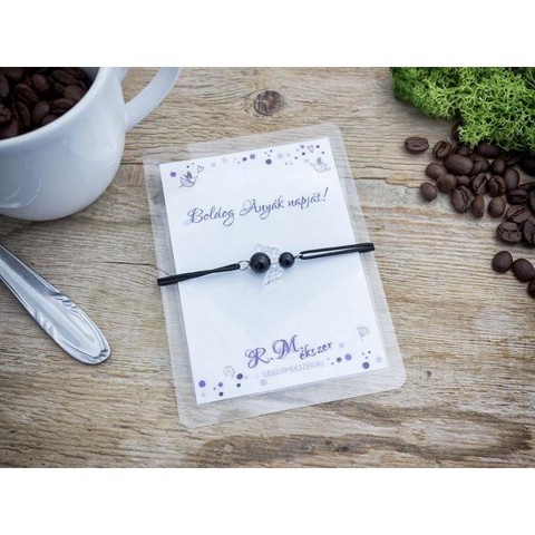 A számotokra állítottunk össze egy kedves ajándékot, szeretettel! A karkötőt a kártyával együtt kapjátok meg!​A köszönő csomag tartalma: 1 db karkötő 1 db köszönő kártya Ez a karkötő remek meglepetés lehet bárkinek, akit szeretnél megajándékozni. A laminált kívánság kártya mérete 110×80 mm.Speciális csúszó csomók segítségével van elkötve, így méretre tudod igazítani. Fontos, hogy óvatosan húzd a csomókon keresztül.Amit az ónixról érdemes tudnod:Az ónix általában fekete, néha előfordulhat fehér, szürkés csíkozódással is.Lelki gyógyhatása:Az ónix egy védelmező kő, amely a negatív energiák ellen véd. Csökkenti a befolyásolhatóságunkat, növelve így az önbizalmunkat, egészséges egónkat. Egyensúlyba hozza a külsőnket és belsőnkkel, így magabiztosabban mozoghatunk a világban, stabilitást, ellenálló képességet, kiegyensúlyozottságot biztosítva ezáltal. Bánat és melankólia esetén is hatásos.Testi gyógyhatás:Erős hatással van az agy tevékenységére, javítja a koncentrációt, de használhatjuk Alzheimer-kór és epilepszia ellen is. Hat a fülre és azok betegségeire, mint pl. fülgyulladás, - fájás, -zúgás, hallásromlás. Szintén hatásos látásgyengeség ellen is. Erősíti az immunrendszert.Hozzárendelt mágikus hatás:A legtöbb népnél a fekete ónix védelmező kőként szolgált a rontások, fekete mágia ellen. Sokan ma is negatív energiák elleni védelemre használják.Csillagjegyei: Nyilas, Bak, VízöntőCsakrája: Gyökércsakra  Figyelem! Az ásványokat, kristályokat az őskor óta használják a test, a lélek és az érzelmek harmonizálására. Az ókori kultúrákban kifejezetten elterjedtek voltak. Az évezredek alatt számtalan tudás és tapasztalat gyűlt össze róluk. Ásvány ékszereink leírásánál a meghatározó szakirodalom alapján készült összegzések olvashatók. Fontos! Az ásvány ékszerek viselése, az ásványok és kristályok gyógyításban, alternatív terápiaként való használata nem helyettesíti a modern orvostudományt, a gyógyszeres kezelést. Betegség esetén az öngyógyítás helyett kérjük, forduljon szakemberhez!