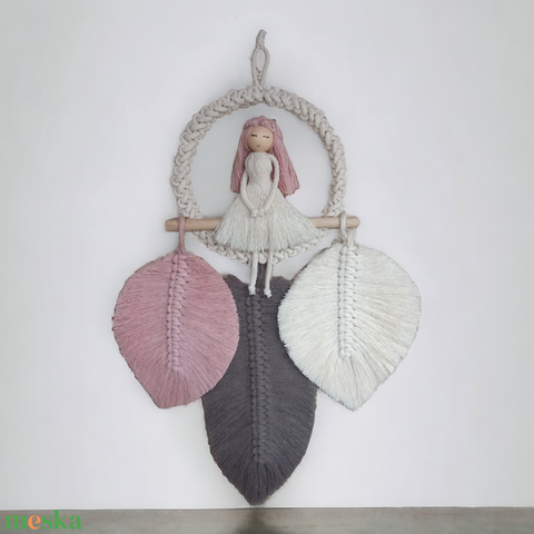 Makramé baba levelekkel falidísz