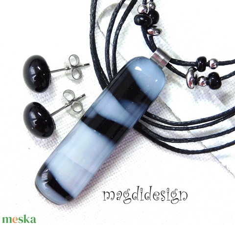 Ködös-fehér fekete üvegékszer szett, nyaklánc, pötty fülbevaló 1