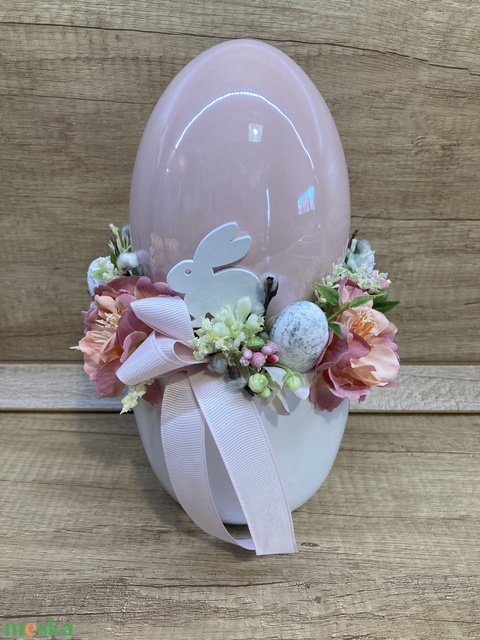 - Anyaga: selyemvirág, szalag, kaspó, kerámiatojás