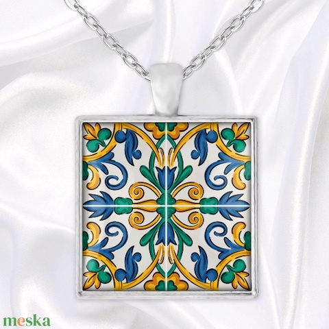 Mediterrán ihletésű, négyzet alakú üveglencsés medál