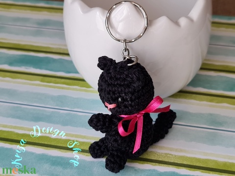 Kézműves horgolt kabalafigurás kulcstartó - Mini macska (Szerencse macska)