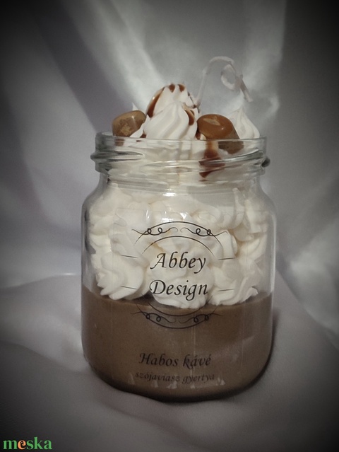 Habos kávé illatú desszert gyertya , illatgyertya, szójaviasz gyertya, dekorgyertya