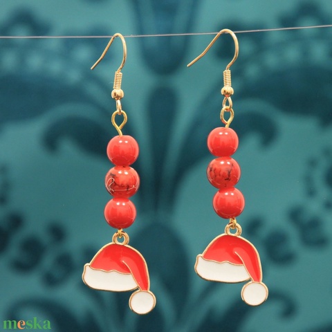 Beakasztós mikulás sapkás medálos fülbevaló