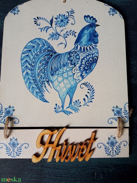 Kék kakas- húsvéti ajtókopogtató tábla